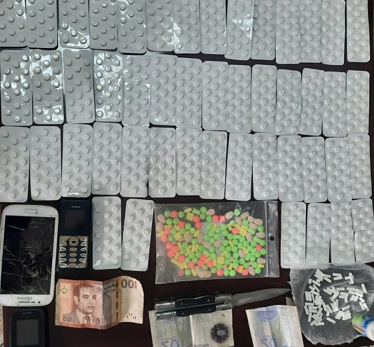 فرقة الأبحاث والتدخلات التابعة لفرقة الشرطة القضائية بمنطقة أمن بني مكادة توقف ذوي السوابق وبحوزته928قرص مخدر