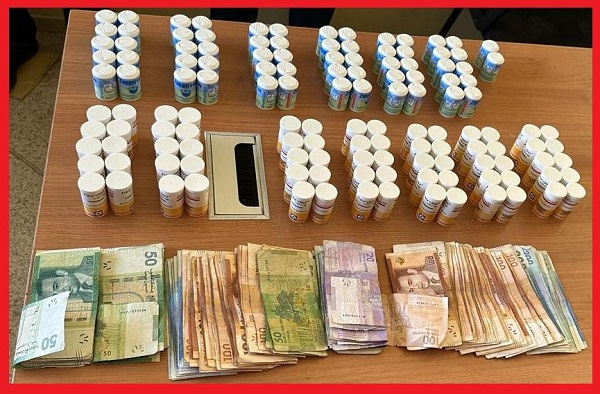تمكنت عناصر فرقة مكافحة العصابات بالأمن الإقليمي بمدينة سلا بناءً على معلومات دقيقة وفرتها مصالح المديرية العامة لمراقبة التراب الوطني، زوال اليوم السبت 11 مارس الجاري، من توقيف شخصين يبلغان من العمر 27 و32 سنة، يشتبه في تورطهما في قضية تتعلق بحيازة وترويج المخدرات والمؤثرات العقلية.وقد جرى توقيف المشتبه فيه الأول بمدينة سلا، مباشرة بعد وصوله على متن سيارة أجرة قادما من إحدى مدن شمال المملكة، حيث أسفرت عملية التفتيش عن العثور بحوزته على 3940 قرص طبي مخدر، من بينها 2100 قرص مخدر من نوع “نورداز” و1840 قرص طبي من نوع “زيبام”.وقد قادت الأبحاث والتحريات المنجزة في هذه القضية إلى تحديد هوية شخص ثاني متورط في محاولة اقتناء الشحنة المحجوزرة بغرض إعادة ترويجها، حيث تم توقيفه والعثور بحوزته على مبلغ مالي ناهز 22 ألف و450 درهم.وقد تم إخضاع المشتبه فيهما للبحث القضائي الذي يجري تحت إشراف النيابة العامة المختصة، وذلك لتحديد باقي الامتدادات المحتملة لهذا النشاط الإجرامي، وكذا توقيف باقي المتورطين في ارتكاب هذه الأفعال الإجرامية.