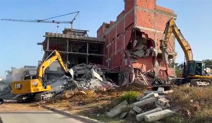 بتعليمات الوالي محمد مهيدية.هدم بنايتين مخالفتين للقانون بمنطقة الرهراه بطنجة