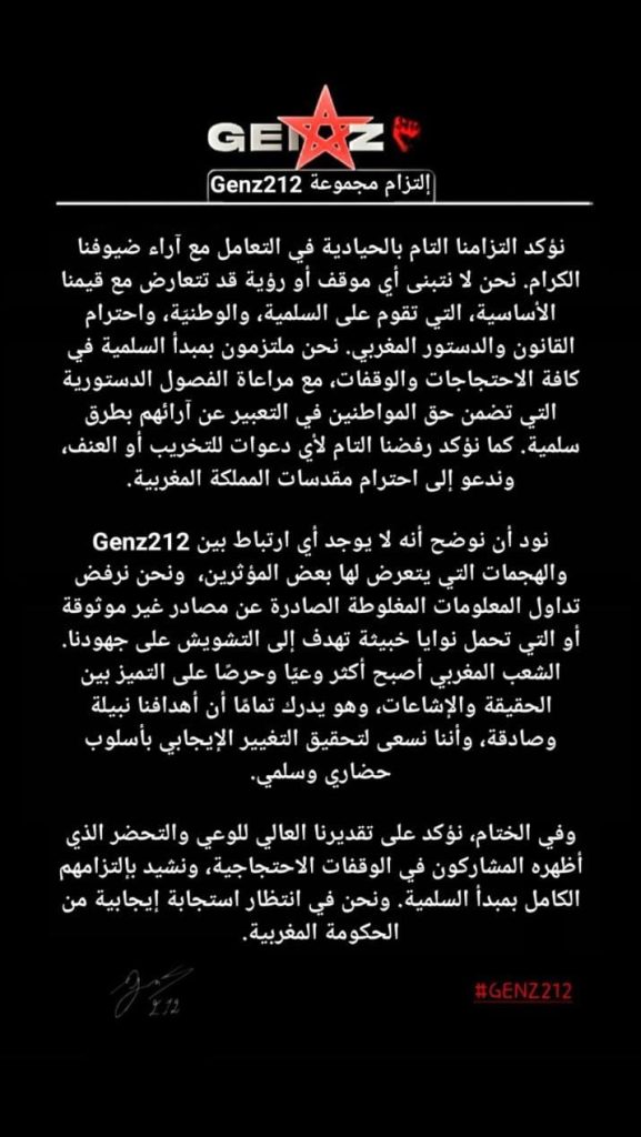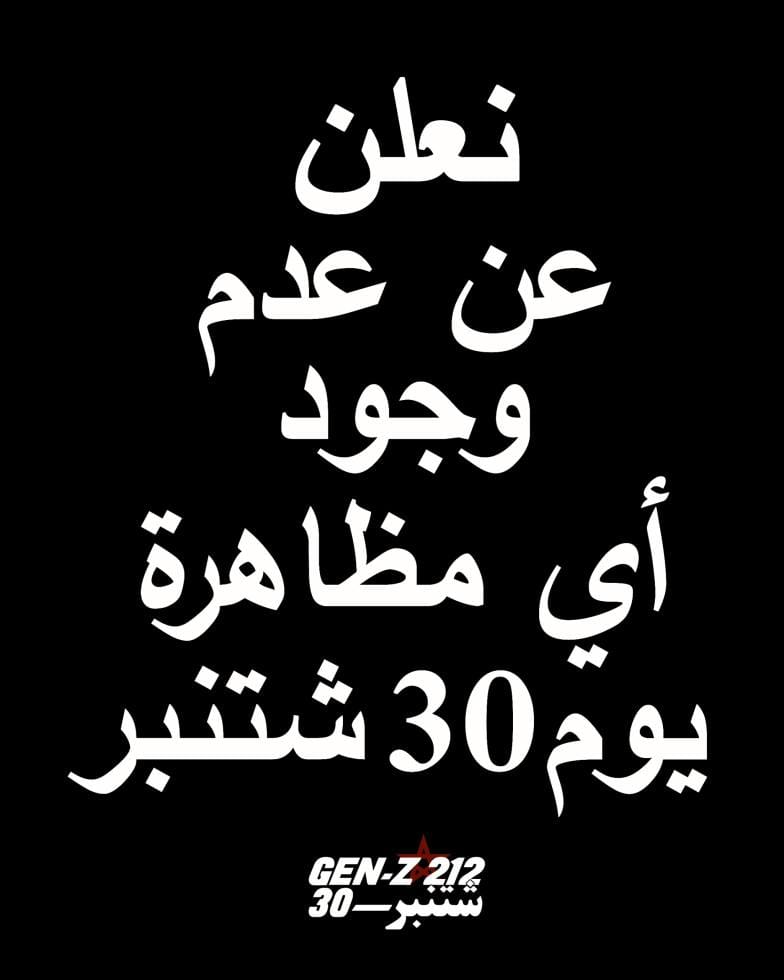 إخبار: تعلن مجموعة 212 Genz عن عدم وجود أي تظاهرة يوم 30شتنبر