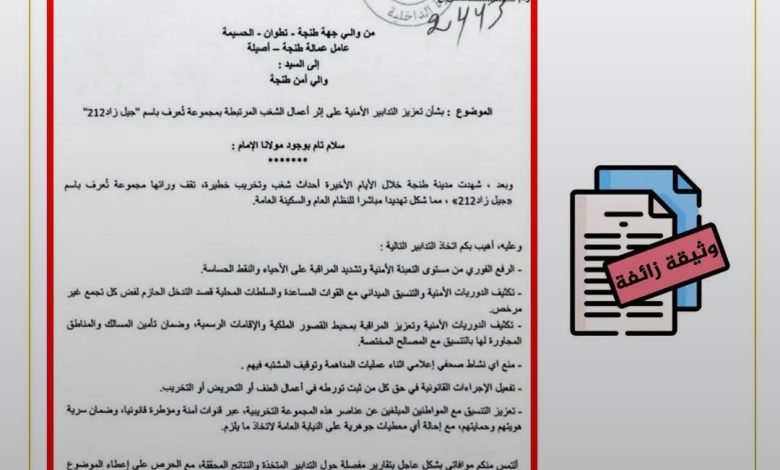 ولاية طنجة تنفي مراسلة زائفة حول التدابير الأمنية لمواجهة مظاهرات شباب جيل Z